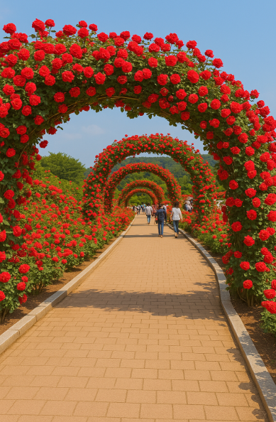 - 특징: 장미터널, 야경 명소, 860여 품종